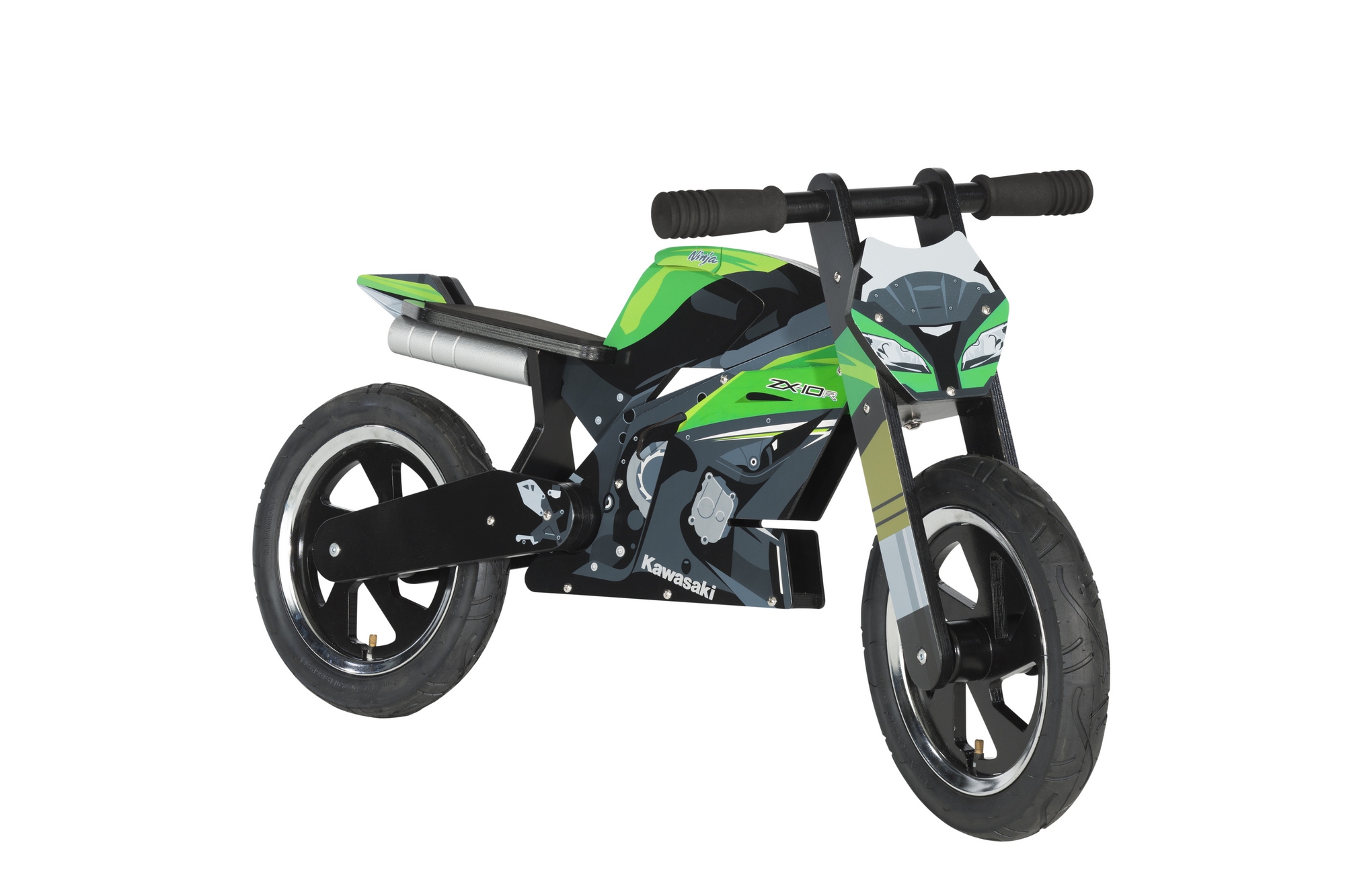 Ispirata allo stile possente della ZX-10R, la nuova Kiddimoto ha un telaio in legno, i cerchi in alluminio, pneumatici in gomma, manopole e sella imbottita. Adatta ai bambini con altezza compresa tra 80 e 105cm