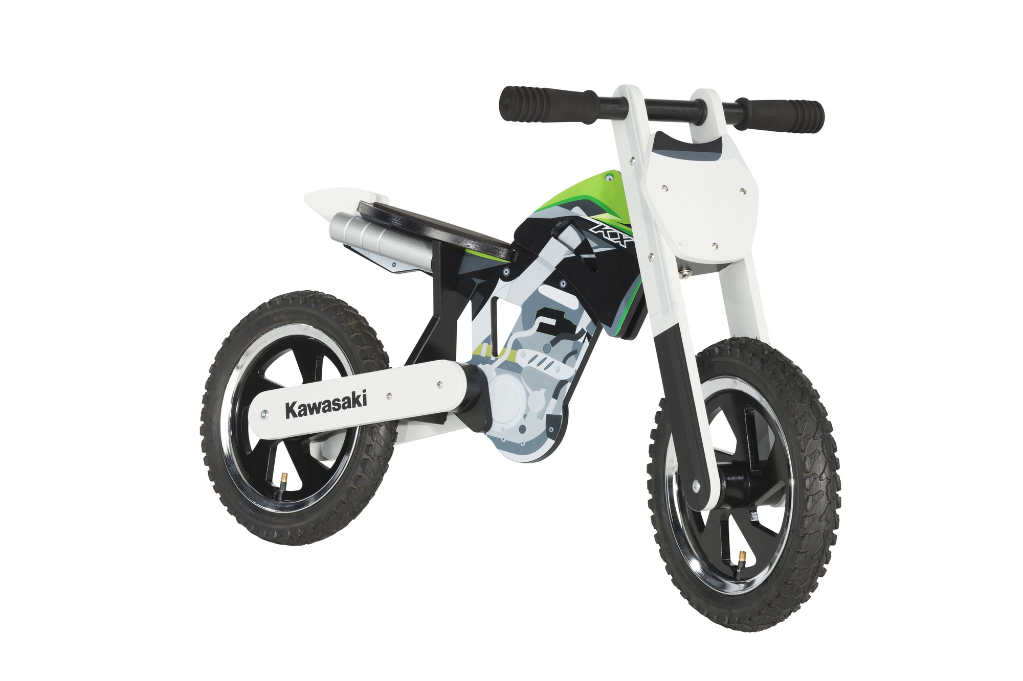 Ispirata allo stile possente della ZX-10R, la nuova Kiddimoto ha un telaio in legno, i cerchi in alluminio, pneumatici in gomma, manopole e sella imbottita. Adatta ai bambini con altezza compresa tra 80 e 105cm